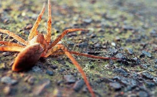 EX743-24B イオウイロハシリグモの死骸を巣に運ぶ クロヤマアリ |