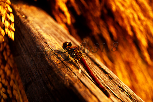 EX679-17 アキアカネ(オス) 奥は収穫した稲 |