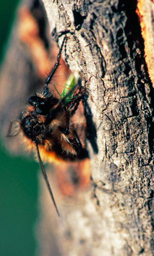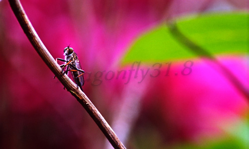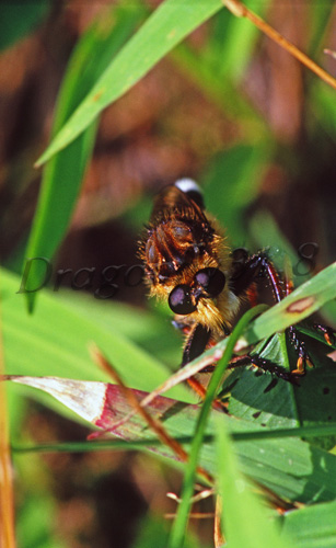 592-24 オオムラサキツツジ の脇で獲物を待つ マガリケムシヒキ |