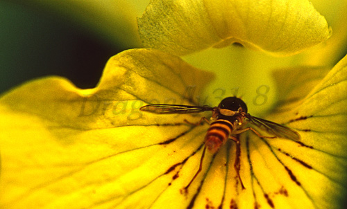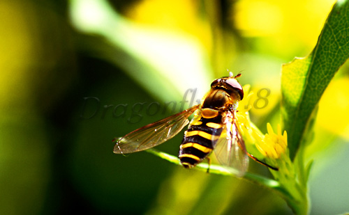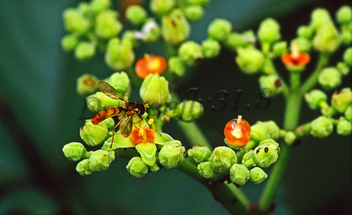 EX600-22 テンプルゴールド の花の蜜を吸う ホソヒラタアブ |