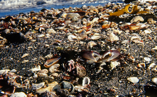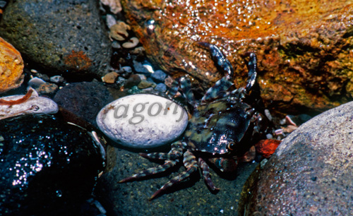 EX692-31 カツオノカンムリ を食べるイワガニ |